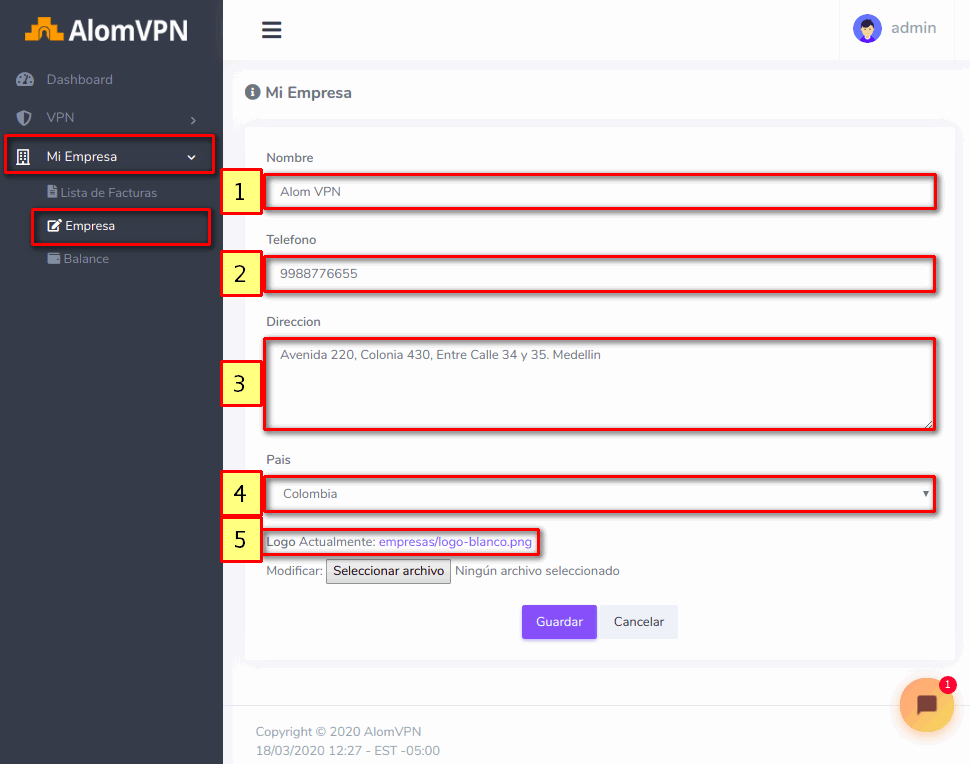 - Logo: Puede adjuntar el logo de su empresa.