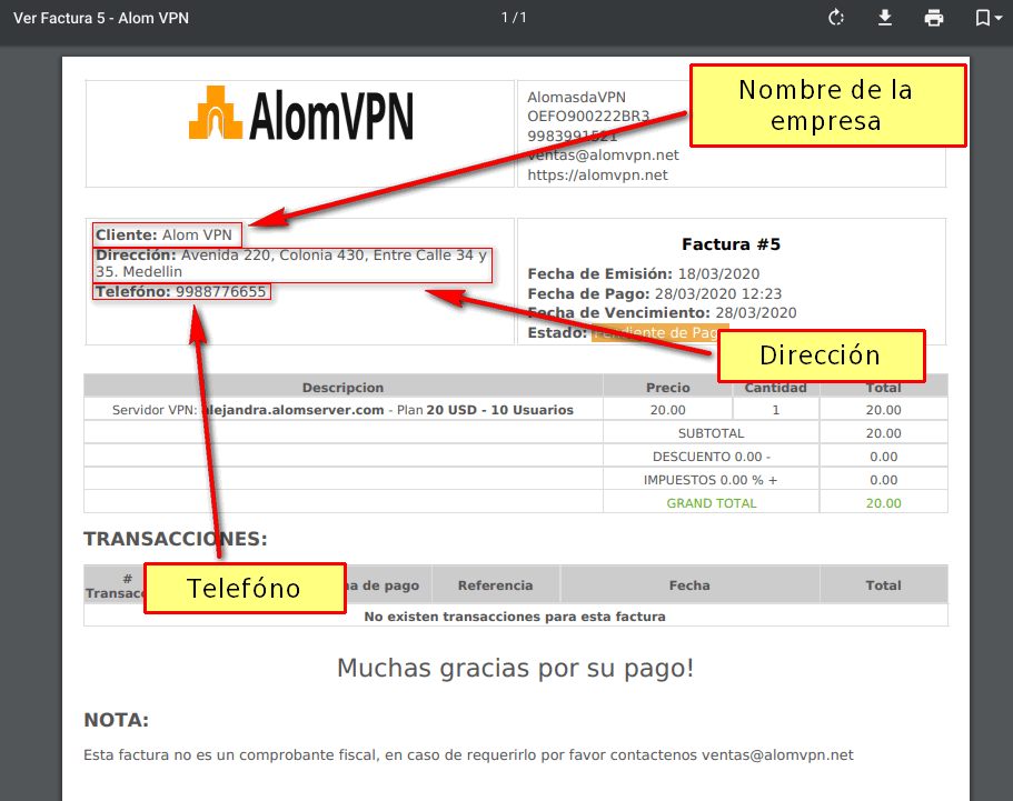En el siguiente ejemplo se puede visualizar que información que estara en las facturas.